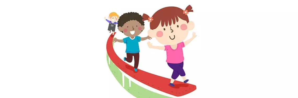 W wakacje często spędzamy czas na świeżym powietrzu, na przykład w parku, w lesie, na placu zabaw, na plaży. Wspaniałą zabawą, w którą możecie się bawić zarówno sami, jak i z innymi dziećmi, a także z dorosłymi, jest „Mały akrobata”. Możecie do niej wykorzystać przedmioty znajdujące się wokół was. Wystarczy znaleźć pień drzewa, murek czy krawężnik, czyli coś, co będzie pełnić funkcję równoważni. Ważne, by było to miejsce bezpieczne, niezbyt wysokie i położone z dala od ruchliwych ulic oraz zbiorników wodnych.