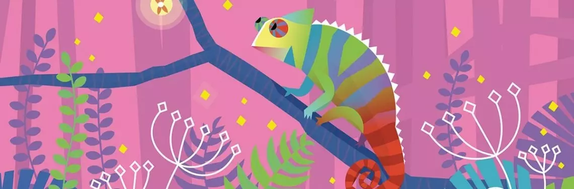 Znacie takie zwierzę jak kameleon? Ten potomek dinozaurów żyje głównie na Madagaskarze i w Afryce. Jest wyjątkowym gadem zaliczanym do jaszczurek. Ciekawostką jest to, że każde oko kameleona może patrzeć w inną stronę.