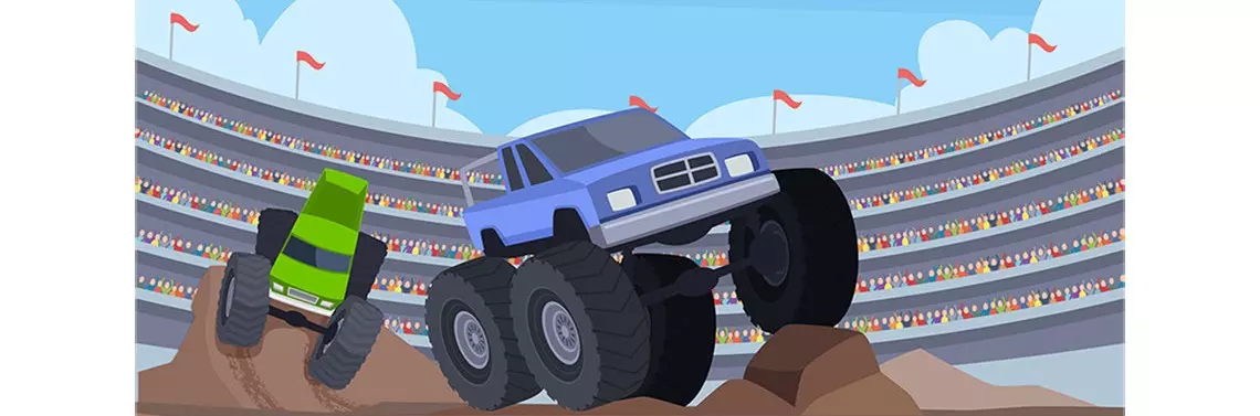 3, 2, 1, monster trucki wystartowały! Na przodzie królował największy z nich, Turbo. Zaraz za nim sunęły dwa ogromne traktory. Mezo bardzo starał się pokazać innym, ale wydawało mu się, że nikt nie widzi jego blasku. Pozostałe samochody go przysłoniły, czuł się niewidoczny. Wtedy pomyślał: „Skoro nikt nie zostawił tu dla mnie miejsca, muszę sam je sobie zrobić”. Gwałtownie skręcił kierownicę i wjechał w Bosa, zielonego monstera z ogromnymi kołami. Bos wjechał w błoto i mimo prób wydostania się, pozostał w miejscu, jedynie buksując kołami. Teraz Mezo był już bliżej widowni. Oddzielał go