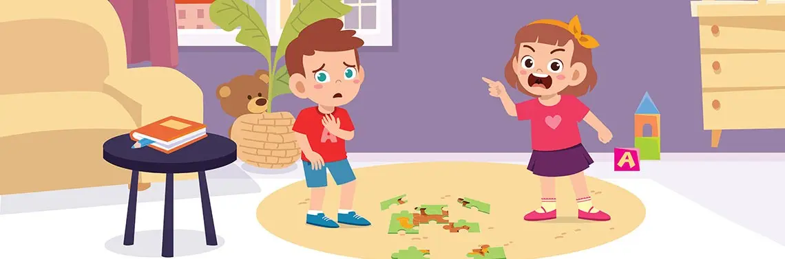 – O nie! Popatrz, co zrobiłeś?! – Zosia poderwała się na równe nogi i stanęła nad porozwalanymi puzzlami. – Wszystko zepsułeś!