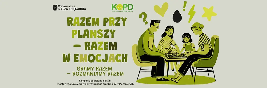 10 października to wyjątkowa data – obchodzimy wówczas przede wszystkim Światowy Dzień Zdrowia Psychicznego, ale również Dzień Gier Planszowych. Z tej okazji Komitet Ochrony Praw Dziecka oraz Wydawnictwo Nasza Księgarnia rozpoczynają ogólnopolską kampanię społeczną „Razem przy planszy – razem w emocjach”.