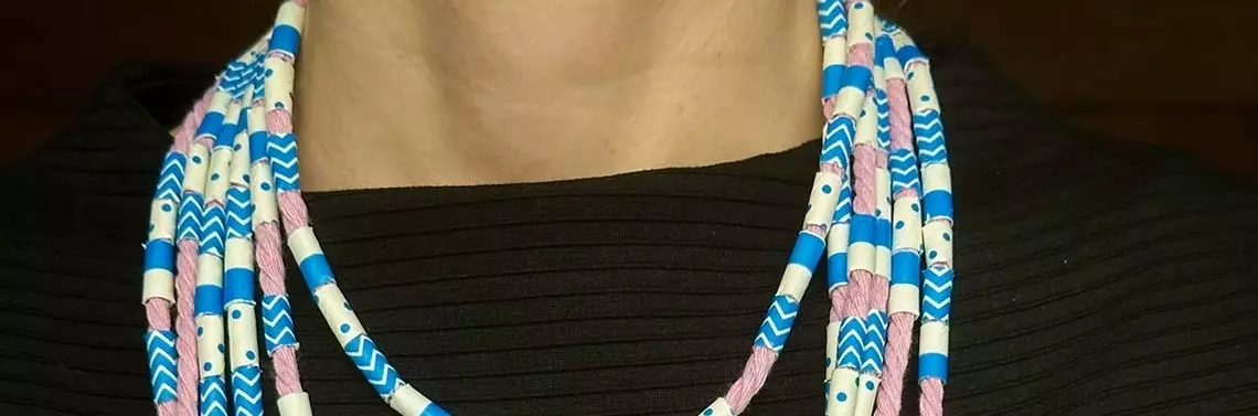 - Nawlecz wszystkie kawałki słomek na sznurek.