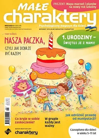 W wrześniowym wydaniu czasopisma Małe Charaktery piszemy o życiu w grupie. Człowiek już od urodzenia jest członkiem grupy - rodziny, a z biegiem lat dołącza do kolejnych i kolejnych. Może być to klasa w szkole, drużyna piłkarska, zespół w pracy i wiele innych. Chociaż nawiązywanie znajomości niektórym przychodzi z łatwością, to czasem może nam być trudno odnaleźć się wśród innych ludzi. Może się tak dziać dlatego, że jesteśmy nieśmiali, brakuje nam wiary w siebie albo z powodu naszego zachowania, które może przeszkadzać innym lub sprawiać im przykrość. Jak odnaleźć się w grupie? Co nam daje współpraca? Zapraszamy do lektury!