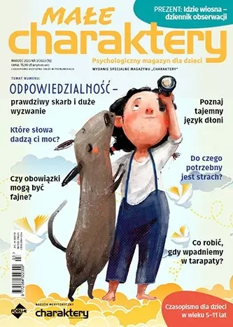 W marcowym wydaniu czasopisma Małe Charaktery poruszamy temat odpowiedzialności. Odpowiedzialność to zobowiązanie do dbania o swoje zachowanie, ponoszenie konsekwencji za swoje działania oraz odpowiadanie za swoje postępowanie. To, czy i jak coś zrobię jest ważne, ma znaczenie. Za dzieci odpowiadają ich rodzice, dorośli opiekunowie, ale im dzieci są starsze, dojrzalsze, tym bardziej zwiększa się zakres spraw i zadań, za które same mogą już wziąć odpowiedzialność. Dorośli, powierzając dzieciom kolejne zadania i obowiązki, przygotowują je do bycia dorosłymi w przyszłości. Czym charakteryzuje się odpowiedzialny człowiek? Zapraszamy do lektury!
