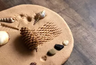 Przyjrzyj się śladom, które mogą zostawiać dary natury: szyszki, kamyki, liście, kwiaty. Stwórz własną płaskorzeźbę, używając tego, co znajdziesz w najbliższym otoczeniu.